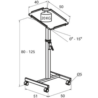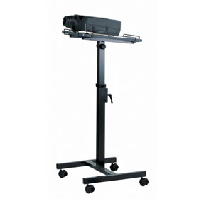 Functional, portable projector table with one shelf, easily inclinable and height adjustable.
