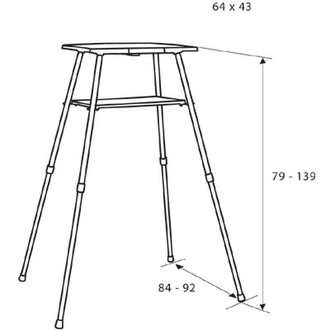 - Aluminium, telescopic legs (min. 80 cm and max. 140 cm length).