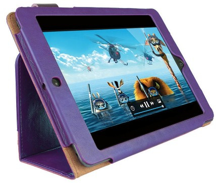 Protective case with stylus holder and card slots for Apple iPad mini retina, Leather, Purple