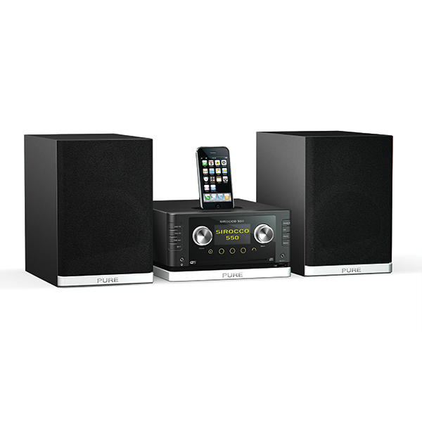 Sirocco 550 provides access to an incredible range of audio sources in a compact, powerful hi-fi system. As well as broadcast radio (digital and FM), a CD player, a dock for your iPod/iPhone and an input for USB flash drives, Sirocco 550 uses Wi-Fi to receive internet content (thousands of radio stations, listen again programmes, podcasts and Pure Sounds) and stream music stored on your computer or network storage device.