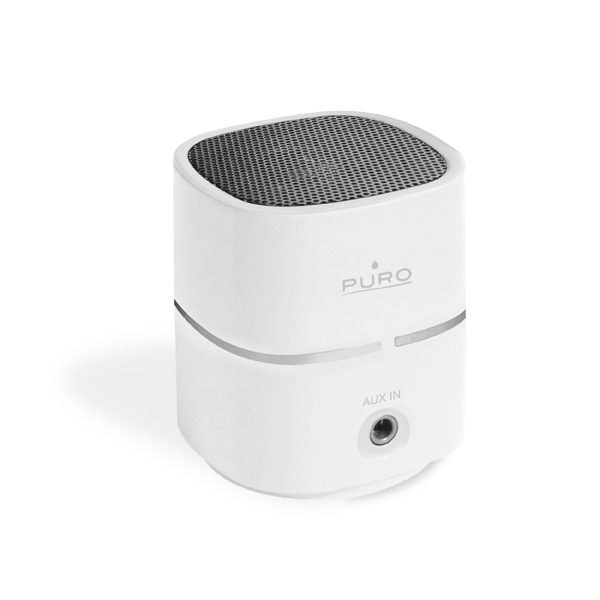 External portable Mini Speaker with Bluetooth connection, characterized by an original compact and ultra light weight design. The stereo jack cable 3.5 mm lets you to connect Bluetooth Mini Speaker with most audio devices. The Mini Speaker is equipped with an internal battery, rechargeable via USB cable. Available in 2 colors, black and white, the Mini Speaker is personalized by the Puro logo.