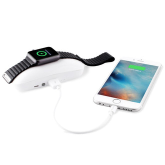 Holder and mobile charging station for Apple Watch and iPhone, 4000 mAh Li-Poly, 1x USB, Fast Charger, white