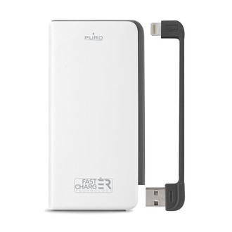 The Slim Power Bank 6500 mAh Fast Charger with Lightning cable and technology is characterized by ultra slim profile of only 13.5 mm. The Power Bank is sold with integrated Lightning cable pull (Certified Made for iPod, iPhone and iPad), and thanks to the two USB ports, simultaneously charging two devices simultaneously, or the Power Bank and a device. Quick charging the Power Bank is guaranteed by the 2A input of Micro USB port, it highlighted in green because it provides better performance. The innovative Fast Charger technology provides a secure and fast recharge, leading from 0% to 65% in 30 minutes the battery of the device.
