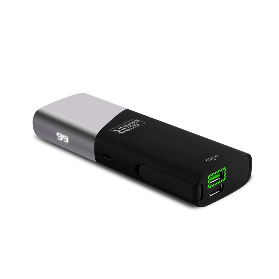 Power Bank (7500 mAh) with integrated LED, ideal to charge smartphones, phablets and tablets. Equipped with two USB ports and compatibile with fast charger devices. The comfortable LCD Display permits to check the charging status. The pack includes a 20 cm Micro USB cable.