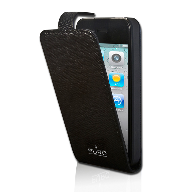 The eco-leather Flipper cases fit iPhone 4S featuring a frontal flap cover with vertical opening and snap closure to safeguard your device from bumps and scratches. The rigid and protective backbone layer in the interior, reinforce the support holding the iPhone 4S in place. Complete access to all controls, touch screen and camera are guaranteed thanks to the customized cut-outs. This model is personalized thanks to the shiny PURO logo on the front and features soft lining interior.