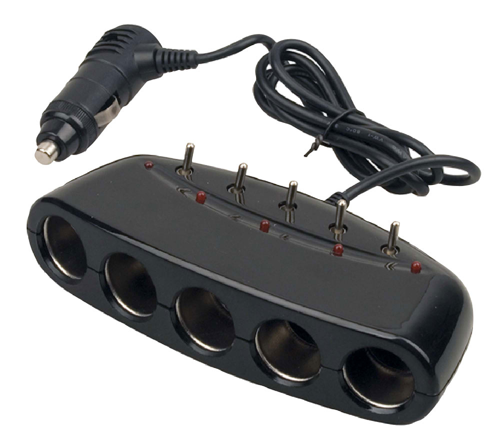 PL12V5SW, 1 to 5 Cigarette Lighter Multiplier, Black