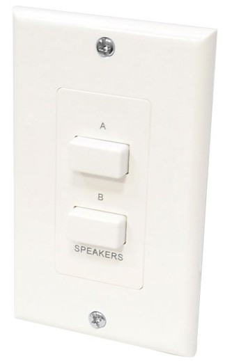 The PVCS2 is an in-wall A/B speaker selector switch that installs in a junction box, just like a light switch. This switch makes it simple and easy to direct your home amplifier’s audio to two sets of speakers, such as one set indoors and one set outdoors. Activating or deactivating the A speakers, B speakers, is as easy as a push of a button. Easy button operation makes operation a breeze. The included Decora-style wall plate means this switch will unobtrusively blend into your wall. Up to 120 watt power load handling.