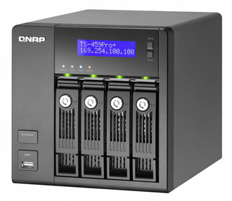 TS-459 Pro+ Turbo NAS - Intel Atom 1.80 GHz, 1GB RAM, 512MB DOM, 2.5/ 3.5" SATA x4, 2 x Gigabit RJ-45 Ethernet, 5 x USB 2.0, 2 x eSATA, Mono-LCD, Tower