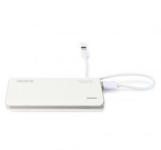 Quick Media PB60. Colour of product: White, Charger compatibility: Universal. Battery technology: Lithium Polymer (LiPo), Battery capacity: 6000 mAh, Charging source: USB. Weight: 135 g. Cables included: Lightning, Adapters included: Micro-USB A
