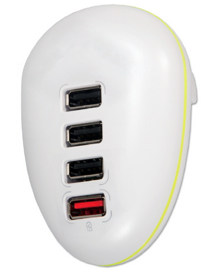 Charge up to four devices quickly and efficiently! This 4-port USB direct-plug wall charger works with MP3, GPS, smartphone and tablets including iPad, iPhone, iPod, HTC One, Nexus 4, BlackBerry, Samsung Galaxy Tab/Note, and Android devices. It has a dedicated port with 2.1Amp for faster charging while its smart-chip automatically adjust power output for the 3 other USB ports. Light weight and compact make it ideal travel accessory. Features built-in over-current, short-circuit protection and folding AC power plug. FCC & CE Certified and RoHS compliant. (Connectors: 4 USB A Female / Input Voltage: 100-240v / Output Voltage: 5vDC 2.5Amp or 12.5Watts / Power Connector: 2-Prong / Color: White).