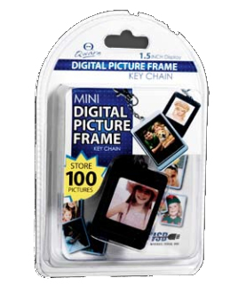- 1.5” CSTN LCD Display - Auto slide show when power on - Built-in 3.7V rechargeable lithium battery - Internal memory of 16MB - Storage space for 100 pictures - Supports .jpg and .BMP formats