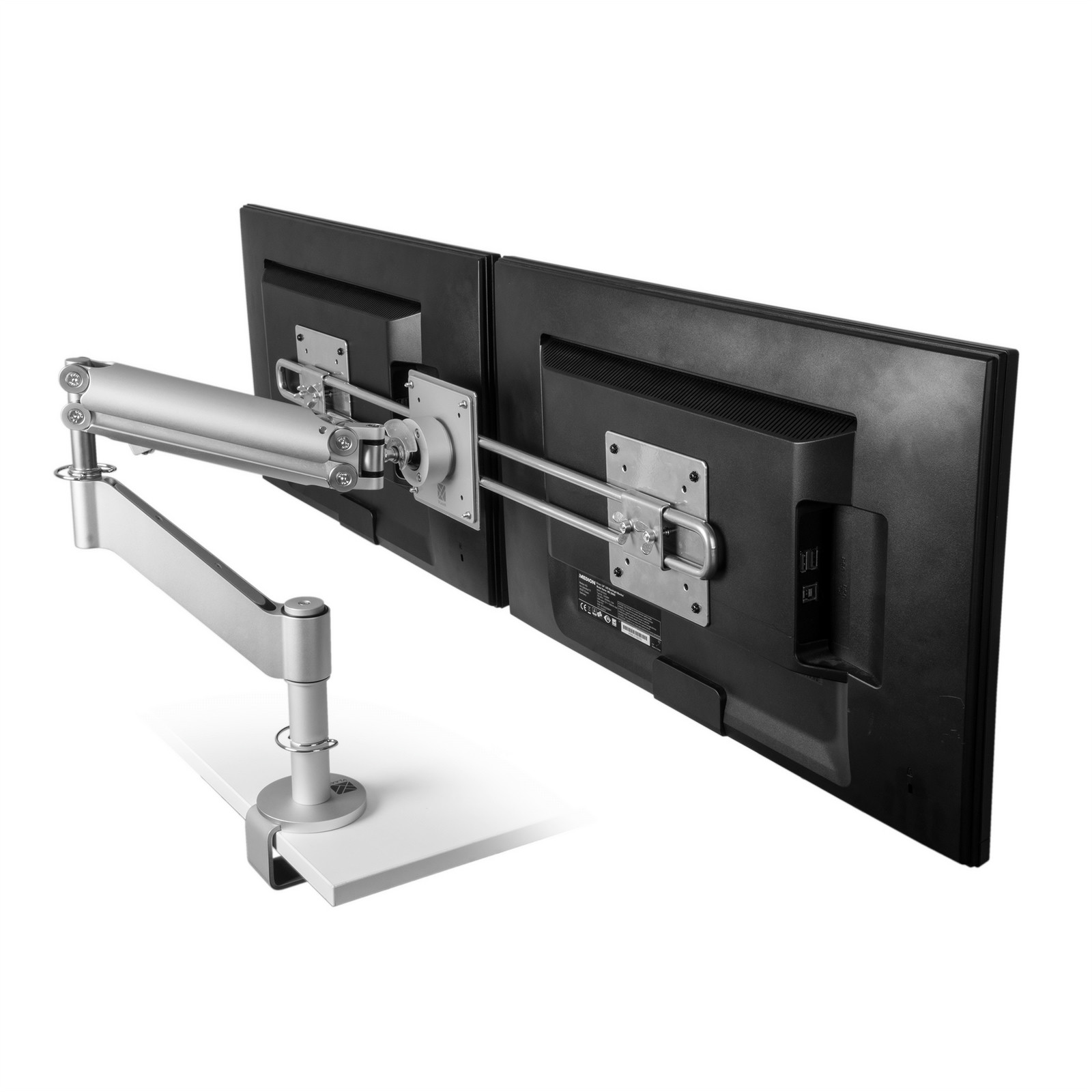 The R-Go Caparo 3 Pro Wing is the solution for working with two screens. With the wing, 2 monitors can be attached to just 1 monitor arm. You do not have to buy an extra monitor arm with this low-cost and easy solution.