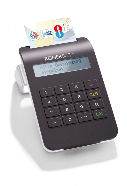 Reiner SCT cyberJack e-com plus. Interface: USB 2.0. Dimensions (WxDxH): 80 x 22 x 124 mm. Certification: ITSEC E2, TÜV-IT, WHQL, ZKA, CE, RoHS. Display: LCD. Compatible operating systems: Windows 2000/XP/Vista/Windows 7 (32/64 bit)/Server 2003-2008 R2, Mac OS X, Linux