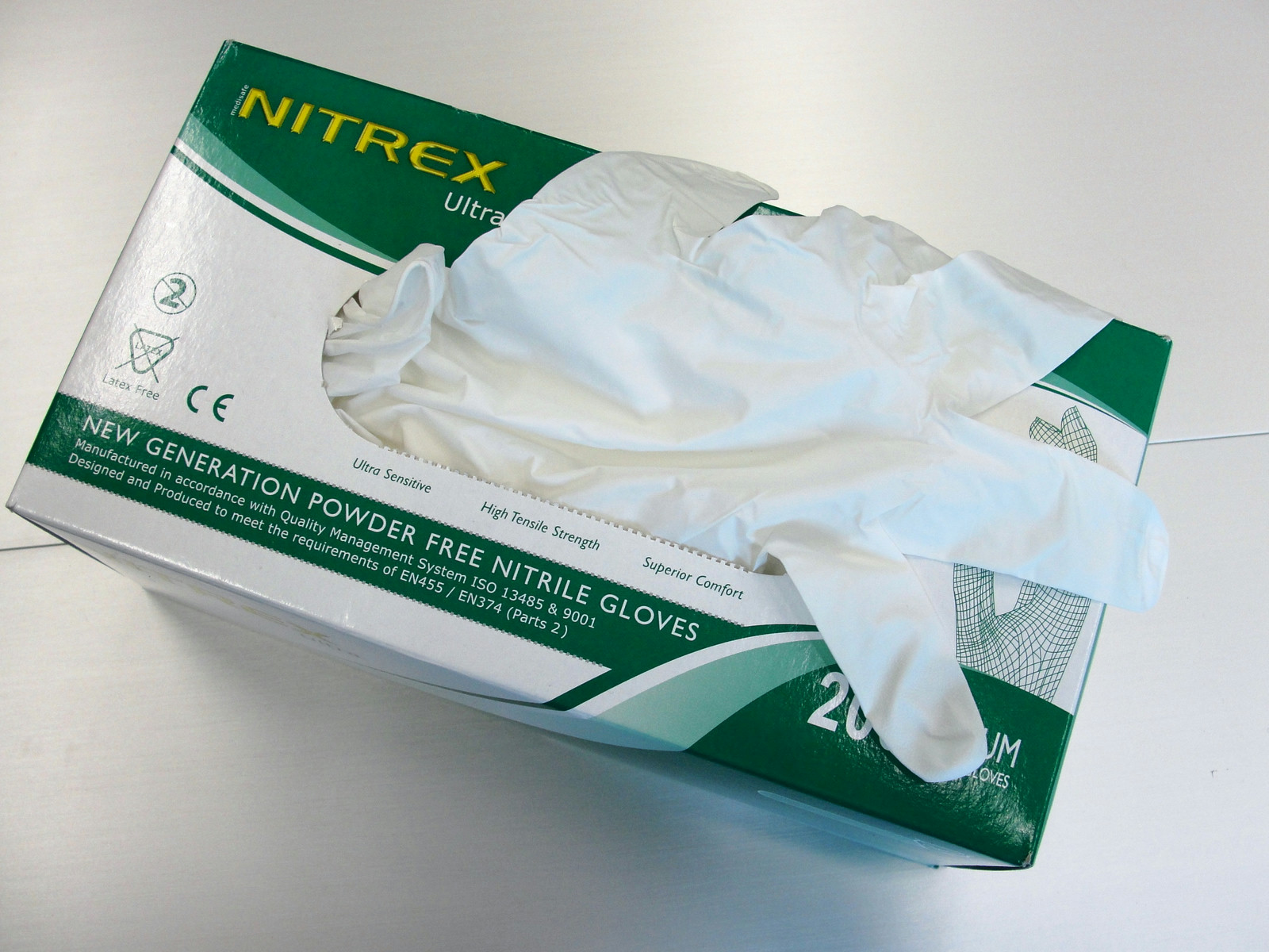 Reinhold 9050114007. Product type: Disposable gloves, Colour of product: White, Material: Nitril