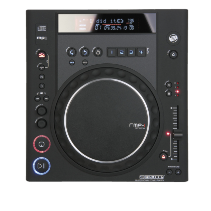 The scratch version of the RMP-1 is equipped with a sophisticated DSP scratch simulator that can be controlled via the two-piece, touch-sensitive jog wheel. The edge is used for searching, push-starting and braking while the inner surface activates the sound synthesis when being touched. The concept is clear: the RMP-1 Scratch MK2 is reduced to the most important mixing functions and due to the added scratch function it becomes the perfect turntablism CD player.