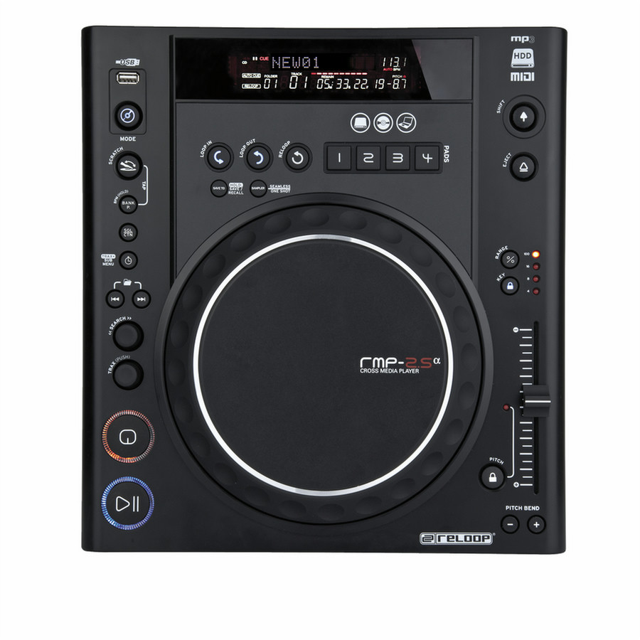 The Reloop RMP-2.5 Alpha is a true cross media player with additional MIDI function. Besides playing current audio formats such as WAV and MP3 from CD, CD-R, memory stick or hard disk drive, it is also possible to control any MIDI compatible DJ software (for example Traktor) thanks to the RMP-2.5's full MIDI compatibility.