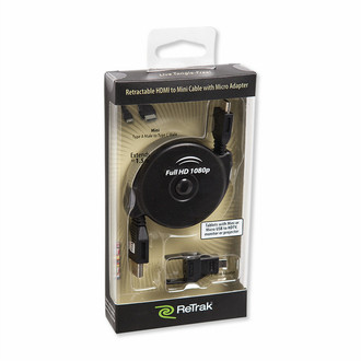 If you have movies, games, or presentations on your tablet, you can easily play them on a big screen in the conference room or in your hotel room. Just use the ReTrak retractable HDMI to mini (A to C) with micro (D) adapter. It connects your tablet with a Micro HDMI or Mini HDMI port to an HDTV, computer monitor, or video projector. It’s great for entertainment or impressive presentations, and then retracts easily for compact storage.