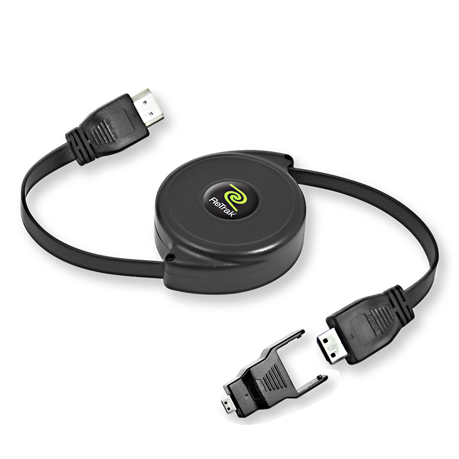<b>Retractable HDMI to Mini HDMI Cable with Micro HDMI Adapter (Type A to Type C with Type D Adapter)</b>