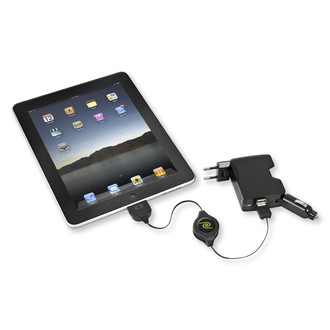 The ReTrak retractable combo charger and sync is perfect for people on the go. The unique design and fast charge allows you to charge your iPad in the car, at home or at the office. With the USB 2.0 connection you can also charge AND sync with any computer. The retractable cable is great for travel yet easily expands to the desired length without the clutter of unwanted cable.