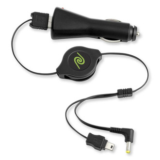 12-24V, 1 m, Black The ReTrak retractable Sony PS3 car charger is perfect for people on the go. The unique design and fast charge allows you to charge your Sony PSP in the car. With the USB 2.0 connection you can also charge AND sync with any computer. The retractable cable is great for travel yet easily expands to the desired length without the clutter of unwanted cable. Ideal for those that are on the road and need a relaible and fast charge device.