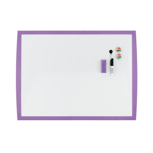 Be brighter with JOY! The Rexel Perfect Purple whiteboard features a tough magnetic dry-erase surface for durability. The stylish curved plastic frame adds a splash of colour to your workspace and looks great with the other JOY products. The board is ideal for shopping lists, recipe lists or general day to day to do list.