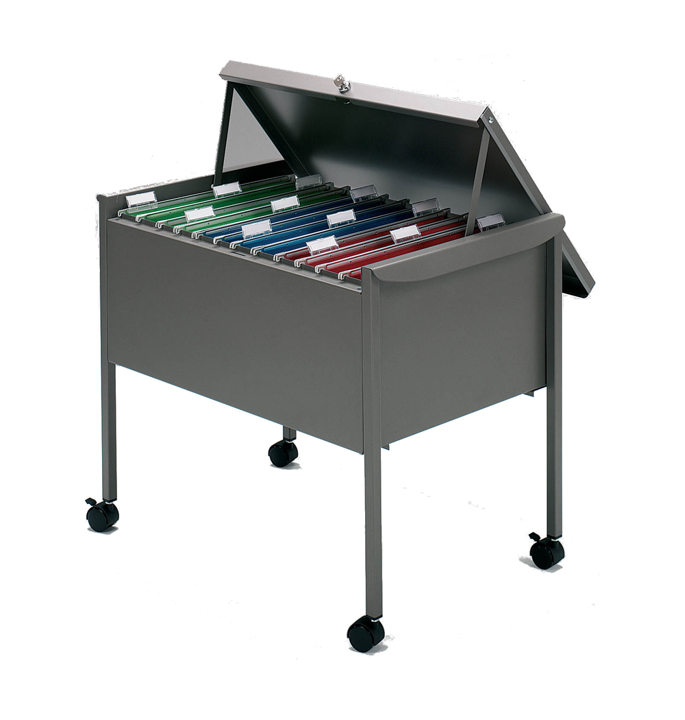 A5 Rexel filemate suspension file trolley, but with lockable lid and fixed bottom panel to protect sensitive files.