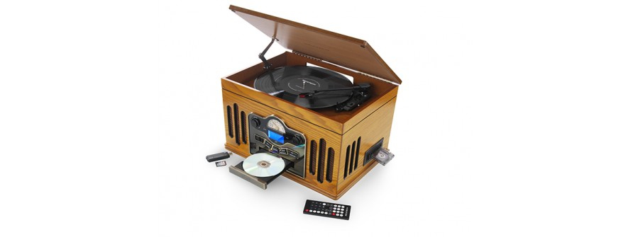 Het inventieve Ricatech RMC240 6 in 1 muziekcentrum kan het allemaal. Met zijn nostalgische design is dit ultieme entertainment centrum dat volledig van hout is gemaakt, een werkelijke traktatie voor ogen en oren. Terwijl de buitenkant van een flinke dosis nostalgie is voorzien, beschikt de binnenkant over alle moderne technologieën waar we allemaal zo van houden. Dit muziekcentrum wordt compleet geleverd met een cd-speler die alle mp3-bestanden leest, digitale AM/FM-radio, 3-toeren platenspeler welke geschikt is voor uw 33-, 45- en 78-toeren platen, cassettespeler, USB-poort en SD-kaartsleuf! Met de opnamefunctie kunt u met één druk op de knop rechtstreeks uw vinylplaten, cassettes, CD's en SD-kaarten op een USB-stick vastleggen. Met de opnamefunctie kunt u tevens bestanden van USB naar SD kopiëren. Van nu af aan kunt u uw oude vinylplaten opslaan en omzetten in digitale bestanden! De koptelefoonaansluiting bevindt zich aan de voorzijde van de RMC240. Door het uiterlijk en de prestaties is dit muziekcentrum alles wat uw bar, restaurant, kantoor of huis zich maar kan wensen. Het muziekcentrum wordt met een complete set stereo luidsprekers geleverd. Deze bevinden zich in de houten behuizing van het muziekcentrum en beschikken over een superieur geluid. Retro is klaar voor de moderne levensstijl! Niets evenaart het plezier en het eenvoudige gebruik van dit muziek centrum van professionele kwaliteit. Het muziekcentrum wordt compleet met afstands bediening geleverd.