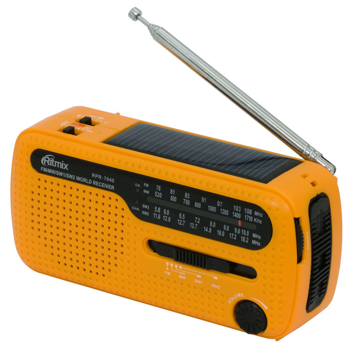 Ritmix RPR-7040. Radio type: Personal, Tuner type: Digital, Supported radio bands: AM, FM, SW. Width: 133 mm, Depth: 62 mm, Height: 47 mm. Battery technology: Nickel-Metal Hydride (NiMH), Battery capacity: 500 mAh, Compatible battery sizes: AAA