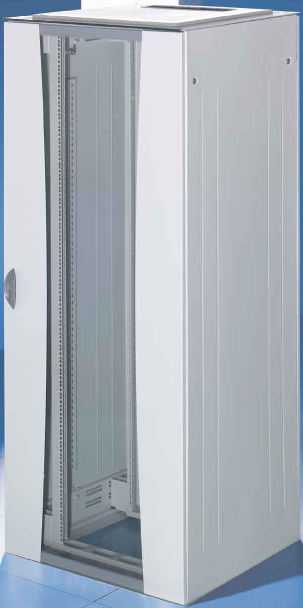Glazed door at the front, with 4 mm safety glass, sheet steel door at the rear. Both including two-point locking rod, handle tray, safety lock 3524E, may be replaced by an Ergofrom-S handle for optionally integrating a semi-cylinder. Door hinges may be swapped, door opening angle 130ТА. Roof plate with integral brush strip, fan unit ready for connection including thermostat control may be retrofitted optionally.
