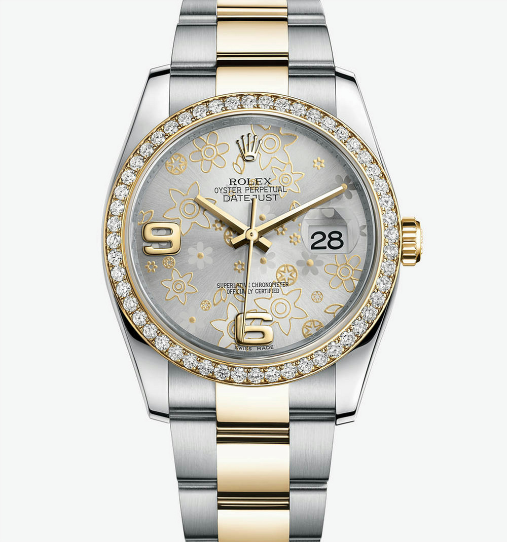 The subtle floral motif is light, natural - and deceptively simple. In fact, what appear to be petals are none other than the cogs of a mechanical watch movement, a poetic reminder of the very essence of a Rolex watch: reliable and precise timekeeping.