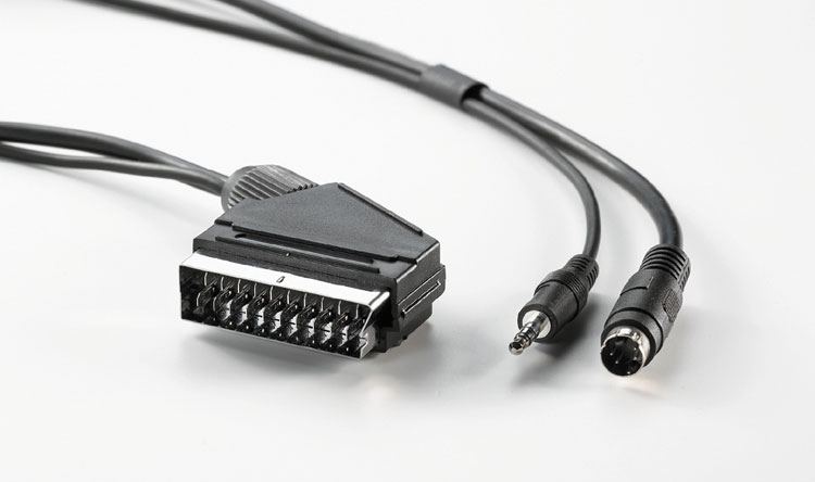 - AV-cable with 1x Scart-plug, 1x S-Video plug (MiniDIN 4pole) and 3.5mm Stereo plug
