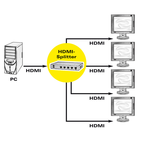 Duplicates the HDMI signal of one device to four HDMI outputs