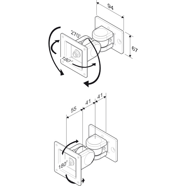 Offers double pivot movement and accomodation portrait/landscape with a weight capacity of 1 - 8 kg