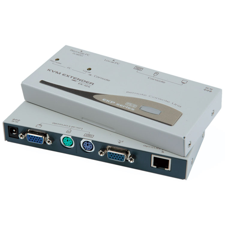 Remotely locates the keyboard, mouse and monitor up to 150 m from a computer