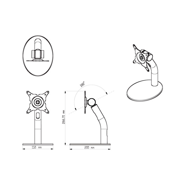 Tabletop Stand/Freestanding base for Tablet holder 17.03.0025 black <ul><li>Solid stand for tablet holder 17.03.0025</li><li>Angled pole allows easy and playful interaction with the screen</li><li>Screen position can be easily and instantly adjusted</li><li>Mounting solution: grommet, desk clamp and free standing base</li><li>Meet VESA 100 (100 x 100 mm)</li></ul>.