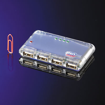 ROLINE USB 2.0 Mini-Hub 4-Port. Colour of product: Transparent. Dimensions (WxDxH): 80 x 45 x 15 mm, Power requirements: 5V DC, 2.5A