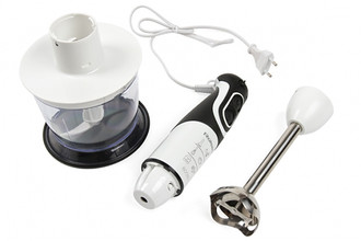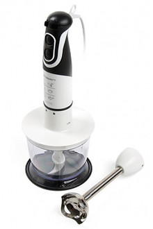 Rolsen SM-600MC. Type: Immersion blender, Colour of product: Black, White. Housing material: Plastic, Shaft material: Metal. Power: 600 W, AC input voltage: 220-240 V, AC input frequency: 50/60 Hz