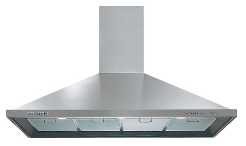 Rosieres RDM 121 RIN. Maximum extraction power: 405 m³/h, Type of extraction: Ducted/Recirculating, Noise level: 68 dB. Type: Wall-mounted cooker hood, Colour of product: Stainless steel, Lamps quantity: 3 lamp(s). Grease filter type: Metal, Number of filters: 4 pc(s). Motor power: 186 W, Bulb power: 20 W. Width: 1198 mm, Height: 1500 mm, Depth: 490 mm