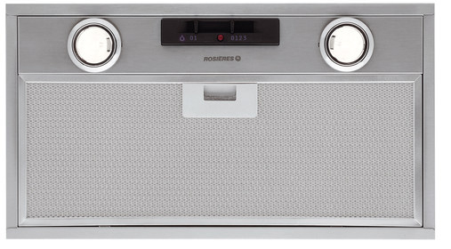 Rosieres RHG 545 IN. Maximum extraction power: 450 m³/h, Type of extraction: Ducted/Recirculating, Noise level: 68 dB. Type: Built-in cooker hood, Colour of product: Stainless steel, Lamps quantity: 2 lamp(s). Grease filter type: Metal. Connected load: 240 W, Bulb power: 20 W. Width: 520 mm, Height: 181 mm, Depth: 285 mm