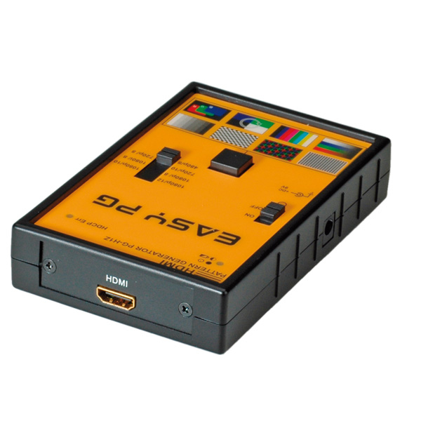 Pattern Generator for HDMI The pattern generator is a useful tool to test and calibrate a digital HDMI video/monitor<br /><ul><li>Supports total 7 timings (up to UXGA/1080p)</li><li>Provides 8 different patterns, including: Color bar, gray, grid, block</li><li>Intelligent and simple functionlity</li><li>Output connector: HDMI Type A</li><li>Pattern selection button, resolution selector switch, power/low battery LED, HDCP LED</li><li>HDMI cable distance: max. 5 m</li><li>Power over power supply (included) or optional PP3 (9V) battery</li></ul><br /><ul><li><b>Contents:</b> Pattern generator, power supply, HDMI cable (1.2 m), manual</li></ul>.