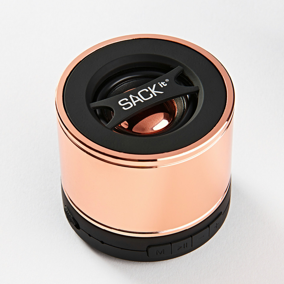 SACKit 60006. Audio output channels: 1.0 channels. Connectivity technology: Wired & Wireless, Interface: Bluetooth/3.5mm/USB, Bluetooth range: 15 m. Product type: Mono portable speaker, Colour of product: Gold. Recommended usage: Mobile phone / Smartphone. Power source type: Battery, Battery recharge time: 3 h