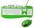 Saitek USB Multimedia Keyboard and Optical Mouse. Device interface: USB, Keyboard layout: QWERTY. Colour of product: green. Movement detection technology: Optical, Movement resolution: 800 DPI. Compatible operating systems: Windows XP, XP64, Vista