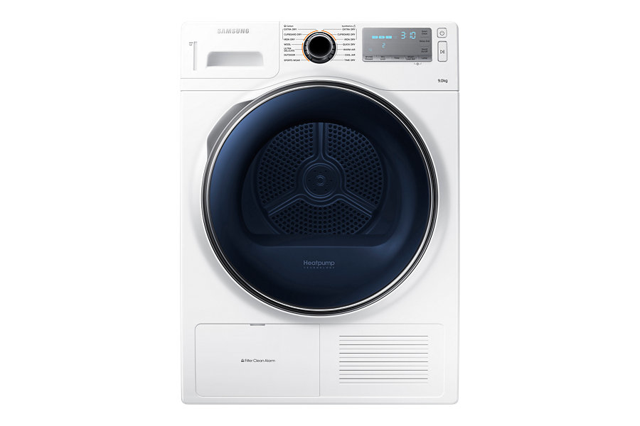 The Samsung Heatpump clothes dryer includes Smart Check, an automatic error-monitoring system. It detects and diagnoses problems at an early stage and provides quick and easy troubleshooting solutions using a smartphone App. It even lets you control your machine remotely and sends you notifications when your laundry is finished! So it saves you time – and potentially expensive repair bills.