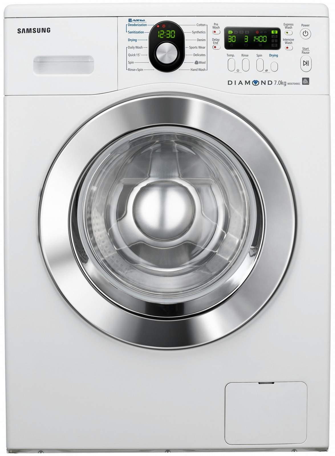You shouldn’t have to damage your favorite fabrics in order to get them perfectly clean. That’s why the Samsung WD0704REC features unique Diamond Drum TM technology, which replaces the typical washing drum with one covered in deep, diamond-shaped depressions. This revolutionary texture keeps your fabrics safe from snags, while creating the perfect environment for gentle but effective washing. Keep your clothes in top condition by trusting them to the Samsung WD0704REC’s exclusive Diamond Drum™.