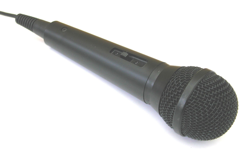 Smart black vocal condenser microphone. With large and small jacks.
