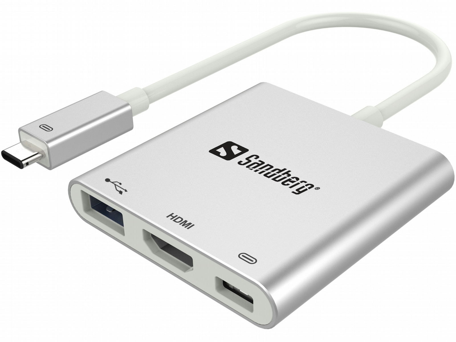 Sandberg USB-C Mini Dock HDMI+USB allows you to connect an extra monitor, a TV or a projector to your computer with a USB-C port. In Addition, you get a standard USB 3.0 A port to connect USB devices, as well as a USB-C throughput to connect power. This way your computer can be powered while the dock is connected.