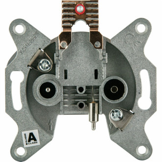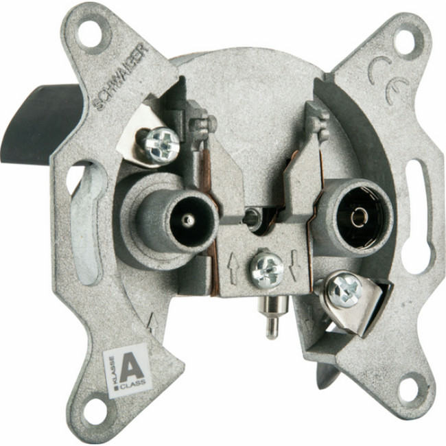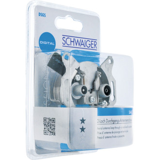 This SCHWAIGER® pass-through socket is suitable for use on CATV or MATV antenna systems. It is designed to be a pass-through or terminal socket. When used as a terminal socket, the included resistor has to be inserted. The socket is suitable for reception of TV and radio signals and CANNOT be used as a single socket without terminating resistor. Due to a special clamping technique, the cable connections do not have to be screwed.