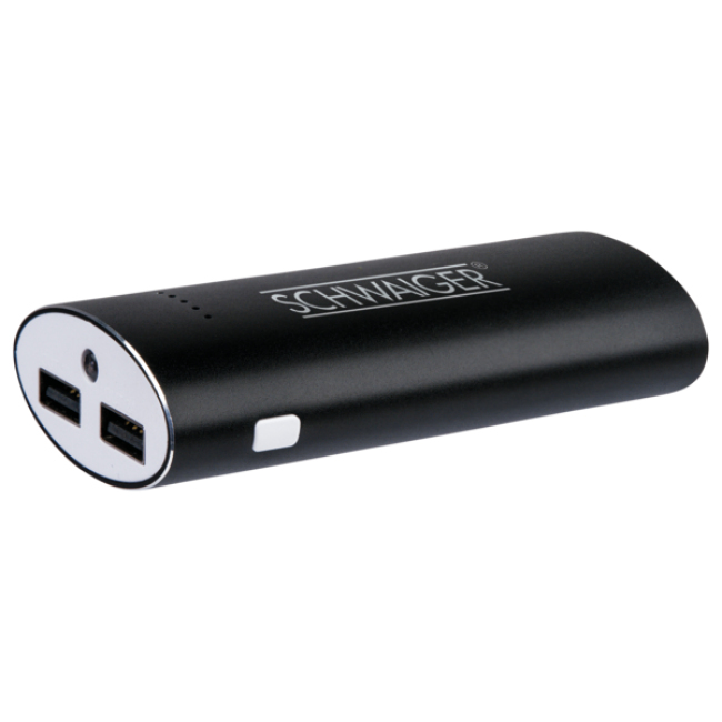 This SCHWAIGER® power bank allows for easy and simultaneous charging of up to two portable devices on the go. With the included charging cable, the power bank can be charged on any USB jack. To charge devices via the power bank, simply connect the respective charging cable to the USB connection of the power bank. Power is supplied via a rechargeable battery.