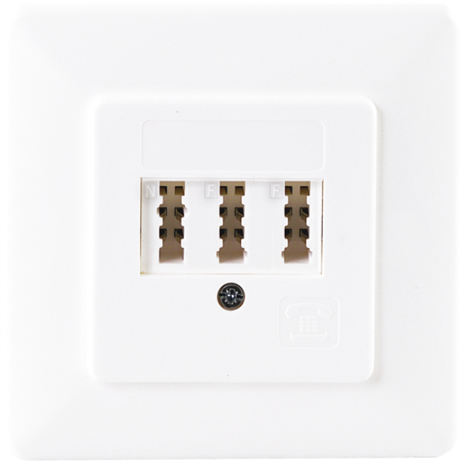 This SCHWAIGER® TAE connector socket is suitable for connecting two independently operated telephones and an additional device. The socket was designed for in-wall installation.
