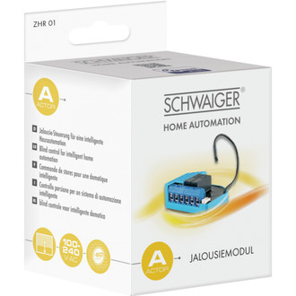 This wireless SCHWAIGER window blind module operates with most of the motors or drives of window blinds, shutters, sun blinds or garage doors available on the market. It is installed directly into the electrical socket of switches or push buttons. The module is equipped with an automatic load sensor and calibrates itself.